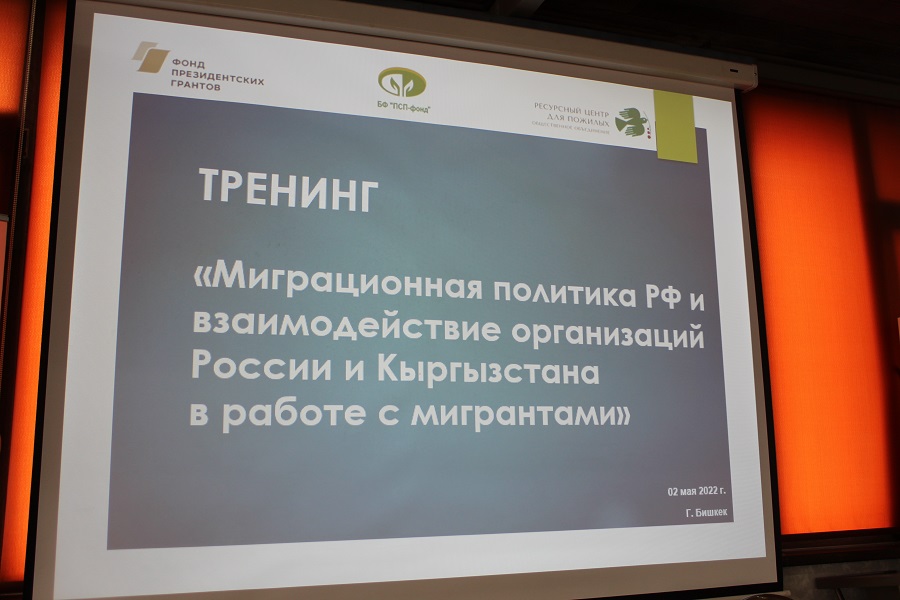 02 июня 2022 года в Бишкеке прошел обучающий тренинг на тему «Миграционная политика РФ и взаимодействие организаций России и Кыргызстана в работе с мигрантами», организованный Благотворительным фондом поддержки и развития просветительских и социальных проектов «ПСП-фонд» в партнерстве с Общественным объединением «Ресурсный Центр для Пожилых».
