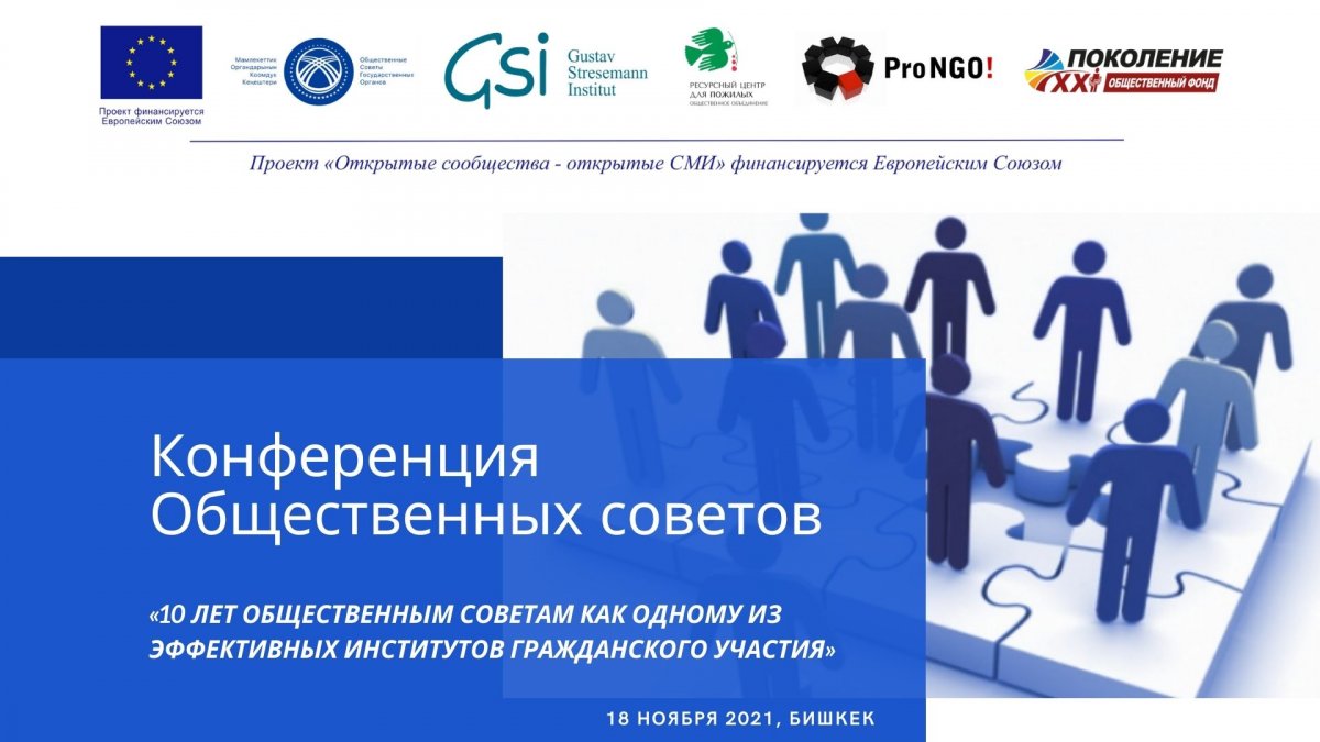 Проект Европейского Союза «Открытые сообщества — открытые СМИ» в партнерстве с Общественными Советами Государственных Органов КР (ОСГО) планирует проведение конференции на тему «10 лет Общественным советам как одному из эффективных институтов гражданского участия».