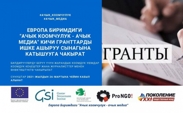 Европа Биримдигинин «Ачык коомчулуктар – ачык медиа» долбоору кичи гранттар сынагына катышууга чакырат 08.02.2021Категории Новости, Открытые сообщества - открытые СМИ