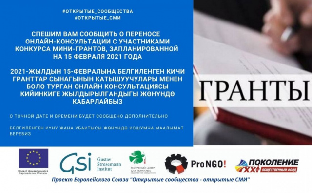 Перенос онлайн-консультации с участниками конкурса мини-грантов 12.02.2021Категории Новости, Открытые сообщества - открытые СМИ