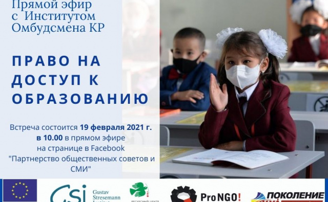 Анонс: прямой эфир с Институтом Омбудсмена КР на тему «Право на доступ к образованию» 16.02.2021Категории Новости, Открытые сообщества - открытые СМИ