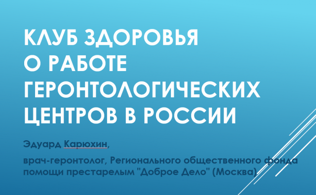 Клуб здоровья на тему «Работа геронтоцентров в России» 29.04.2021Категории Активное долголетие, Новости