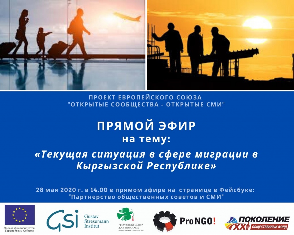28 мая в 14.00 команда проекта Европейского Союза «Открытые сообщества — открытые СМИ» приглашает вас в прямом эфире обсудить текущую ситуацию в сфере миграции в Кыргызстане.